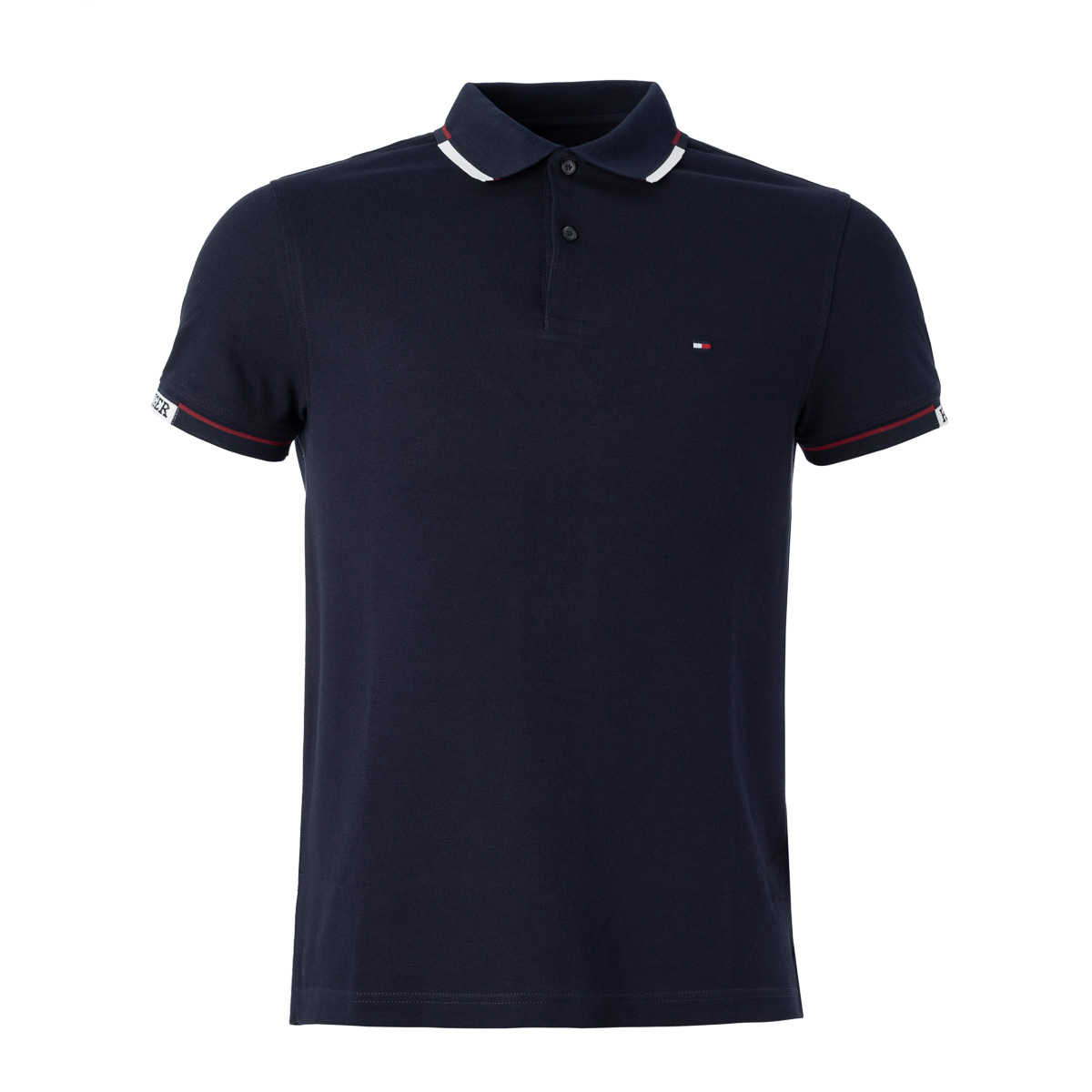 Dois botões para fechamento da gola com "Hilfiger" gravado.