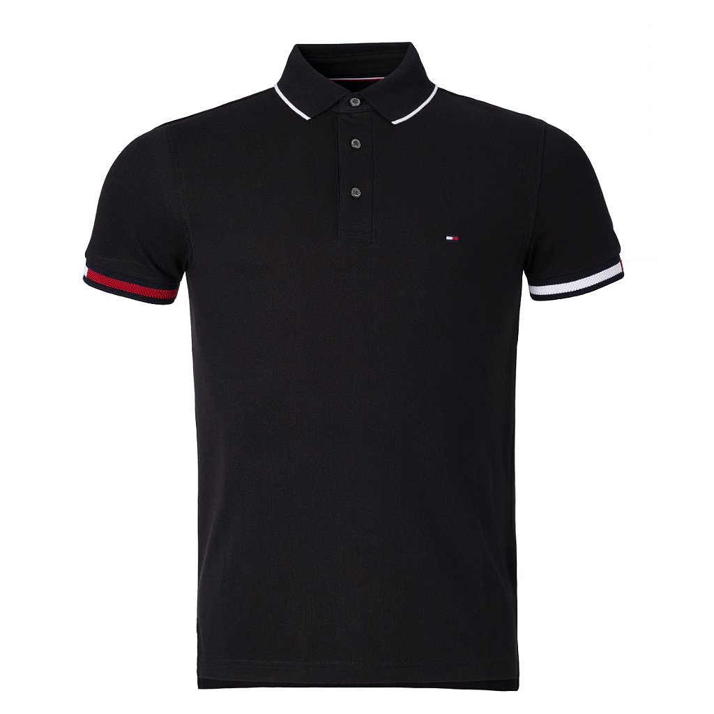 Polo Tommy Hilfiger Masculina Flag Cuff - Cor Preta