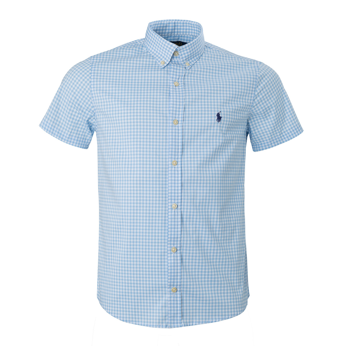 Camisa Ralph Lauren Masculina Custom Fit Quadriculada Azul Claro