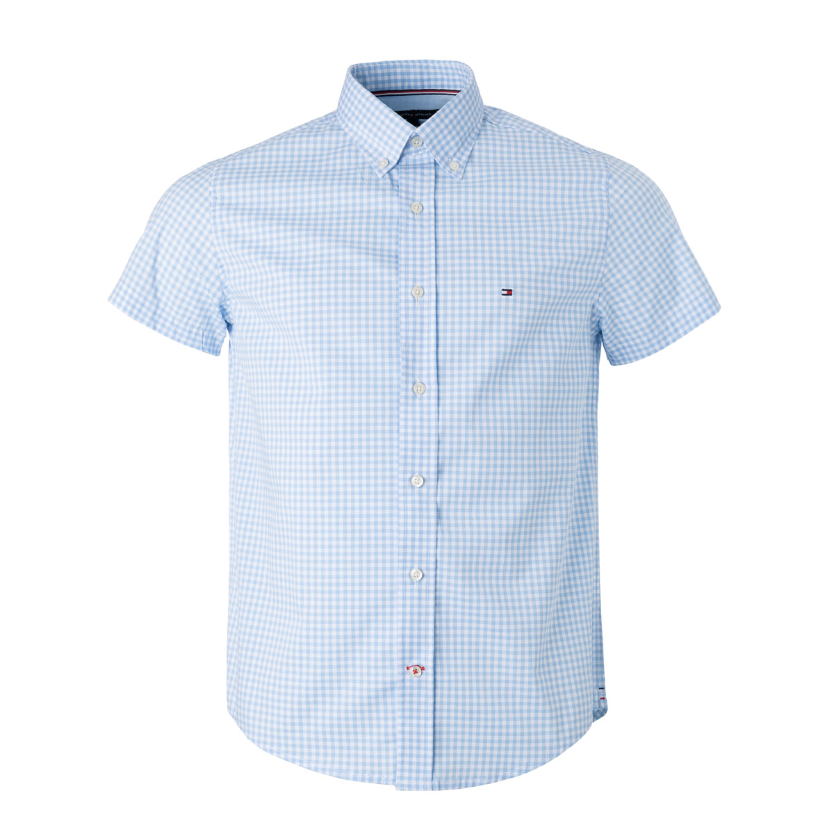 Camisa Tommy Hilfiger Masculina Manga Curta Xadrez Ginghan Branca/Azul