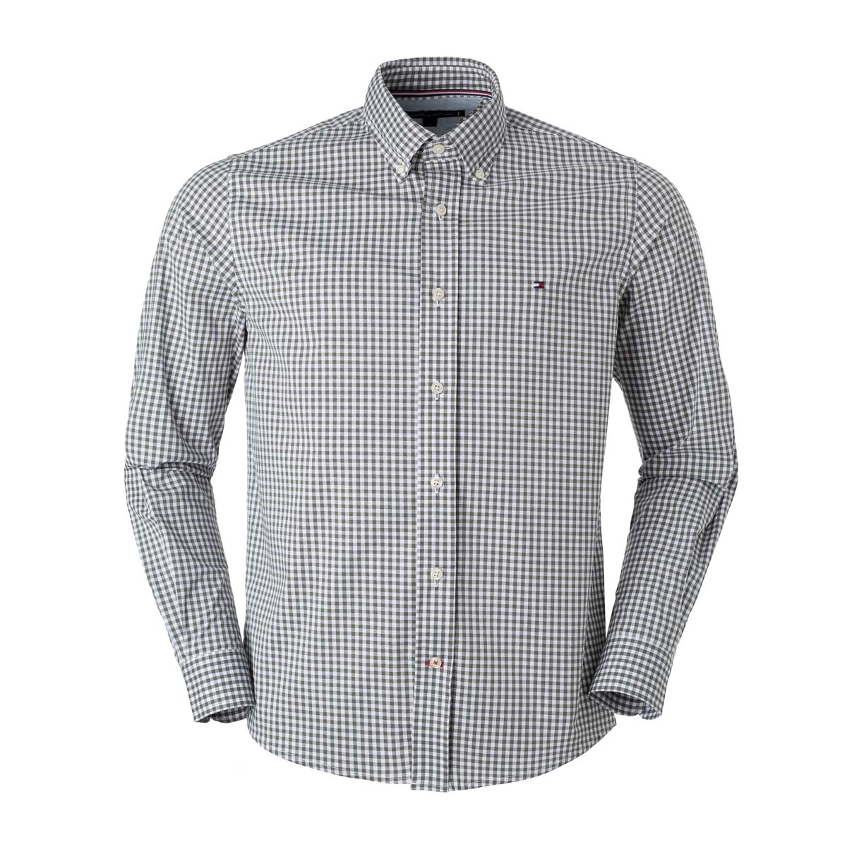 Camisa Tommy Hilfiger Masculina Xadrez Ginghan Branca/Oliva